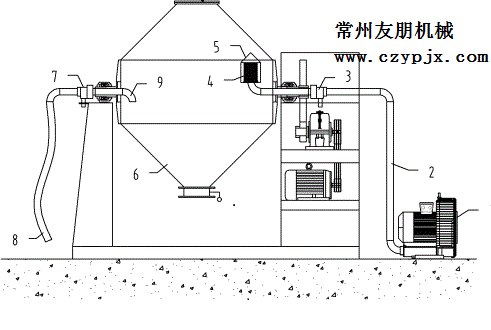 雙錐回轉(zhuǎn)真空干燥機(jī)結(jié)構(gòu)示意圖