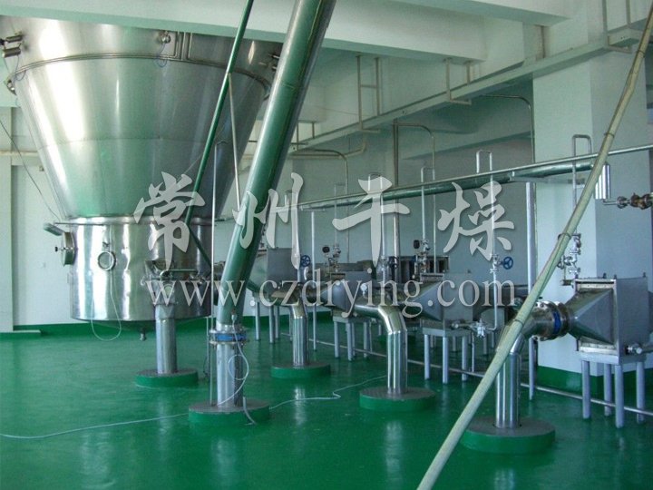 3、生產(chǎn)過程簡化,操作控制方便。對于含濕量40-60%(特殊物料可達90%)的液體能夠一次干燥成粉粒產(chǎn)品,干燥后產(chǎn)品不需粉碎和篩選,減少生產(chǎn)工序,提高產(chǎn)品純度。能在一定范圍內(nèi)通過改變操作條件進行調(diào)整產(chǎn)品粒徑、松密度、終水份,控制較為方便。